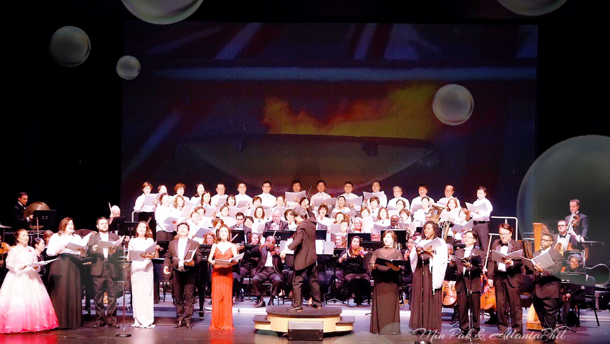 The Korean Anthem is being played by the Atlanta Philharmonic Orchestra conducted by Min Park.